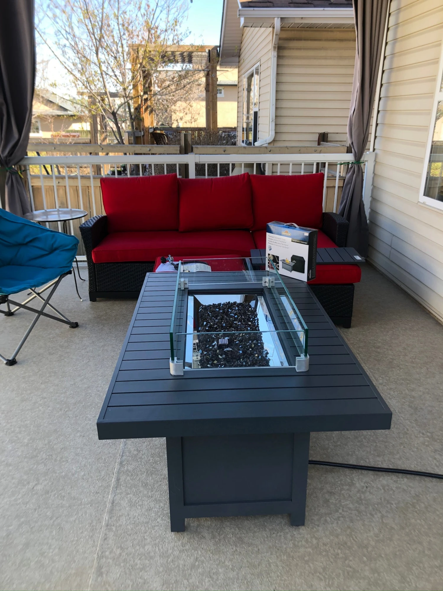 Don’t you hate it when your glass of wine gets knocked into your fire table burner? It creates quite a messy situation which also serves as a permanently embarrassing memory. Avoid the embarrassment by adding a stunning glass wind screen to the table.